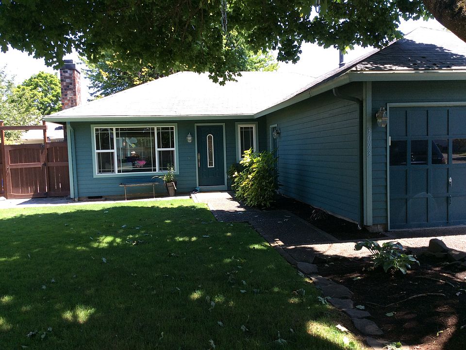 This completely refurbished home is located in a quiet cul-de-sac in a prime Ferry Street Bridge neighborhood and features three bedrooms, one and a half bathrooms, 960 sq ft, Travertine entry, complete new kitchen with recessed lighting, granite counter tops, range oven, dishwasher, extra deep sink with custom facet, air operated garbage disposal, maple cabinets with EZ Close door hinges, Pantry, wood floors, and a slider to the large patio, large dining room with wood flooring, the living room features wood floors and a wood burning fireplace with a travertine hearth, the master bedroom features double closets and a beautiful half bath with a custom vanity and new fixtures, all three bedrooms have carpet all fixtures are brushed nickel throughout the home, all the walls have been retextured and painted, new Millgard Deluxe windows, New Sweetish Century Spruce Siding, newer roof, newer furnace and heat pump for heating and cooling, beautiful backyard with raised garden beds, large patio, water feature, rock pavers, automatic sprinklers, new custom fencing around the perimeter, and outdoor home office with newly added wood floors. This home is much better than when it was new and is like a new home with quality amenities.
