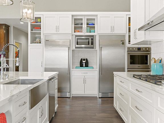 Luxury is redefined in this stunning custom built abode serenely situated on a waterfront homesite in the highly desirable Milagro and the award winning NACS. Enjoy all the amenities your heart desires from the professionally landscaped grounds with irrigation system to the open concept living with soaring ceilings and hardwood floors throughout. A grand foyer entry welcomes you and your guests home to this incredible sprawling floor plan and opens up to a stunning family room showcasing a cascading stone fireplace and water views. Experience a high-end kitchen like you have never seen before offering Cambria Quartz countertops, Frigidaire Professional series stainless steel appliances with a built in fridge and freezer, and double ovens for your culinary delight. This amazing kitchen also boasts an oversized walk-in pantry, custom island and breakfast bar with a 33" stainless steel farmhouse sink, and a bright sunlit eating nook with access to the three seasons sunroom with picturesque views. Relax in comfort in the elegant master suite including a tremendous walk-in closet and extraordinary bathroom with custom tile shower, walls, and floors! Bright and awash in natural light best describes every room in this estate including both full bathrooms. Additional features include a tankless water heater, security system and cameras, raised concrete pad with 220 wiring ready for hot tub, custom barn doors and so much more! This impressive oasis on a quiet cul-de-sac awaits!