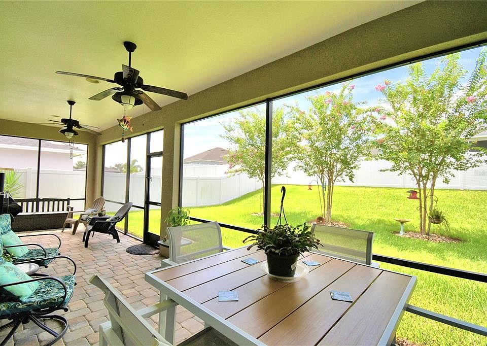 Welcome to this stunning 3-bedroom, 2-bathroom, 2-car garage home built in 2018, nestled in the desirable Highlands Grace subdivision off Hwy 540a in the heart of South Lakeland. From the moment you enter, you'll be captivated by the attention to detail and impeccable craftsmanship throughout. The inviting foyer leads into a spacious living room featuring a tray ceiling and large windows that fill the space with natural light. The open floor plan seamlessly connects to a chef's dream kitchen, complete with granite countertops, stainless steel appliances, tile flooring, under-cabinet lighting, and a generous island perfect for entertaining and family gatherings. The dining area offers a serene view of the beautifully landscaped backyard through large picture windows. The primary suite is an inviting retreat with an en suite bathroom that includes a soaking tub, separate shower, walk-in closets, double sinks, and a private water closet. Two additional guest bedrooms and a stylish guest bathroom provide plenty of space for family and visitors. This home also features a versatile office with elegant French doors, ideal for use as a private living area or playroom. The exterior is equally impressive, with a charming front porch, a paver driveway, and meticulously maintained landscaping. The screened back porch, complete with ceiling fans and a paver floor, overlooks a fenced backyard adorned with beautiful crape myrtle trees. The roof was replaced just a year ago, ensuring the home is in pristine condition. Located in the gated community of Highlands Grace, this home offers easy access to highways, schools, shopping, medical offices, restaurants, and more. With proximity to Disney and other attractions, as well as international airports, this property is truly a GEM you won't want to miss! Call today to schedule your private showing!