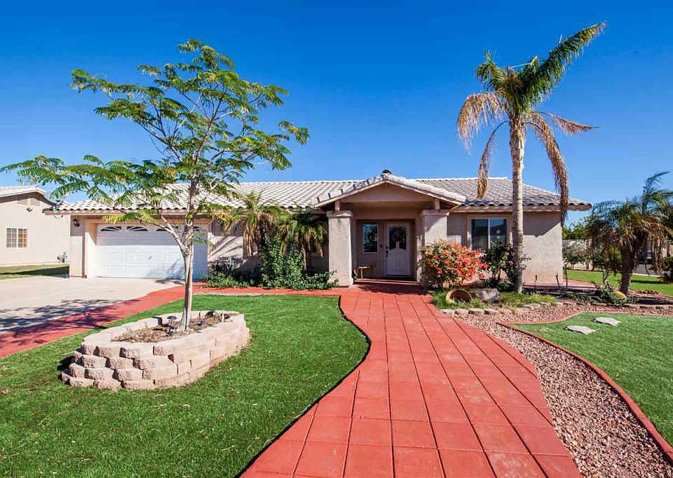 Well-maintained 4 bed/2 bath pool home in Las Casitas! Split floorplan with vaulted ceilings and open-concept living space. The roomy kitchen features lots of counter space, breakfast bar and walk-in pantry. The large lot boasts gorgeous lawn and landscaping front and back. Backyard is an entertainers dream, huge covered patio, an in-ground pool and mature palm and citrus trees.
