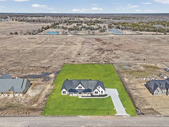 Welcome to your modern farmhouse sanctuary, where thoughtful luxury meets effortless country living. This stunning new construction retreat sits on a 1+ acre lot. Plenty of space to store your RV and build your dream garden, shop, garage, or even a guest house. Step onto the expansive front porch—a true Texas welcome with ample room for rocking chairs, morning coffee, and sunset conversations. Inside, the open-concept floor plan creates an airy, connected feel that's perfect for both daily life and entertaining. The heart of the home features a designer kitchen with stylish countertops, custom cabinetry, and a generous island that naturally draws everyone together. The oversized walk-in pantry with direct garage access makes unloading groceries a breeze and keeps your kitchen clutter-free and beautiful. The sprawling covered patio is an entertainer's dream, complete with a cozy outdoor fireplace and plumbing ready for your dream outdoor kitchen. Imagine lazy weekend mornings, summer barbecues, and starlit evenings in your own backyard retreat. This home offers 4 spacious bedrooms, 3.5 bathrooms, and a dedicated office with French doors—ideal for today's work-from-home lifestyle. The privately situated primary suite is your personal haven, featuring a spa-inspired bath with dual vanities, a luxurious walk-in shower, and a freestanding soaking tub. Secondary bedrooms are generously proportioned, offering flexibility for family, guests, or creative pursuits. The oversized 3-car garage provides abundant storage for vehicles, toys, and all your treasures. Quality finishes and modern farmhouse details throughout create a polished yet welcoming atmosphere. With NO HOA restrictions and room to breathe, you'll enjoy the tranquility of country living while staying conveniently close to town amenities. This is more than a house—it's the lifestyle you've been dreaming of!