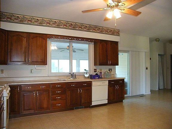 Beautiful home sits on 2 acres and has many upgraded features including a large brick country front porch and a large 3-season room with brick floor off the kitchen and dining area. Living room has a wood burning fireplace. Three bedrooms on the first floor and 3 large rooms upstairs (not pictured) include a family room on the second floor. 9 ft ceilings. In addition to the attached garage there is a large ''Morton Bldg.''
