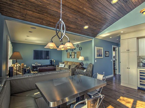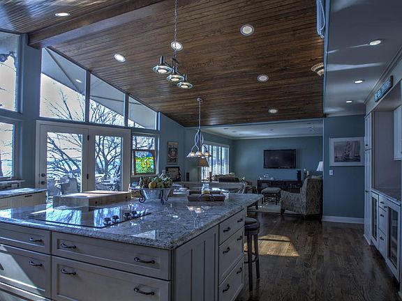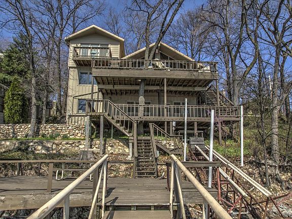 Stunning views, and you will love the complete remodel in this lake home! Main level was designed with entertaining in mind. Kitchen offers large island w/ seating, bar w/ beverage coolers & separate dining area. Also, a guest room w/ en suite bath, separate powder bath + laundry room. Top floor was built w/ privacy for the master suite. Large bedroom, bath w/ walk in shower & adjoining living area w/ TV & mini bar. Lower level offers privacy for guest w/ 2 bedrooms and oversized bath. Outside offers small yard w/ minimal landscaping for low maintenance + more lake time! Decks on 2 levels. Boat dock w/ cement tiles, encapsulated foam, 28' slip + swim platform. Much thought went in this home design, it was built for large gatherings, and lake living!