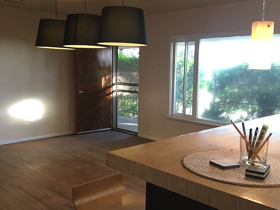 Charming single story home in University Heights for Nature Lovers. Minutes from Two Trees Trail at the base of Box Springs Mountain. Regular wildlife sightings. Grand view of both mountain and city. Eco friendly-Solar powered, level 2 EV charger, outdoor compost bin, 2 organic raised garden beds. Chef's kitchen with a 6 burner gas stove, 2 ovens and a warming drawer. White corian counter with seamless sink. Long stainless counter with bar sink. Stainless dishwasher, refrigerator, and ovens. Chalkboard wall. Hidden microwave. Slide out pantry. Travertine in kitchen and hardwood flooring throughout house. Open dining/kitchen area with full length bar and 5 barstools. Spacious great room with high ceilings and a granite fireplace. French doors lead to private backyard. Single car garage with washer/dryer. 2nd bedroom has carpet. Original 50s tile maintained in both bathrooms. Front bathroom has a tub, back bathroom, a shower. Adjustable ceiling fans in 2 bedrooms. Last bedroom has built in desk and shelves. All bedrooms have full length mirrors, upper cabinets for storage and fire alarms. Spend your evenings relaxing in privacy on the large front porch screened in by honeysuckle. Patio chairs come with the house. Wine optional. Owner will pay for landscape maintenance and planned yard improvements. Tenant will pay all utilities. NO pets. Requires credit report, background check, positive rental history and $2,350 security deposit. Tenants must have their own renters insurance. No smoking allowed inside of house.