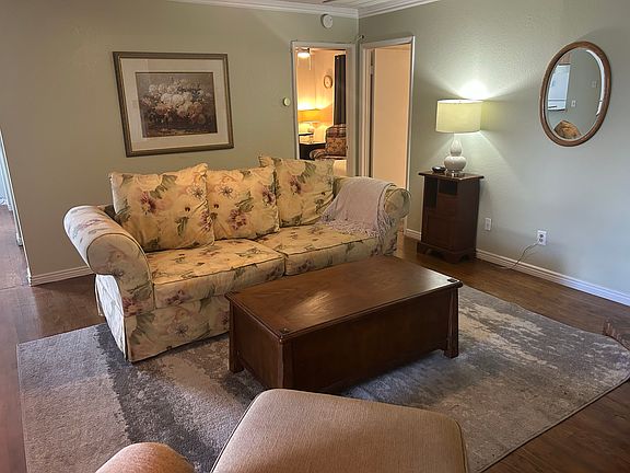 Freshly painted with new curtains and a cozy fireplace. This spacious unit features two primary bedrooms, each with its own walk-in closet. The kitchen and living room feature hardwood floors, while the bedrooms have plush carpeting and both bathrooms include luxury vinyl flooring with a wood-grain look. Recent upgrades include a new washer and dryer, toilets, air conditioning unit, and water heater. Available unfurnished or with a tasteful, neutral furniture package. You'll have one covered parking space and one uncovered space, with additional street parking permitted. As an end unit, it offers added privacy and a large outdoor deck plus a unique, enclosed bonus patio off both bedrooms with outdoor-style siding and a skylight, giving it an airy, open feel while still being part of the interior space. Conveniently located near grocery stores and just 10 minutes from downtown Prescott. Owner pays HOA fees, water, sewer and trash. Renter responsible for gas, electric and cable/ WiFi. First month's rent and security deposit due at signing. No smoking allowed in apartment. One small dog or cat permitted.