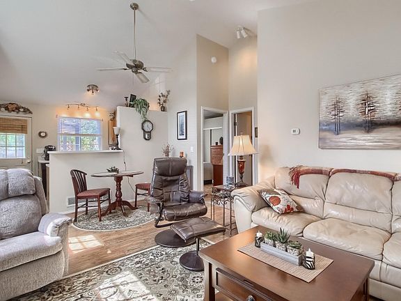 Welcome home to this rare ranch style, end unit town home style condo! This home has the best to offer, no stairs, all new windows plus a great private patio with pergola! Inside you find new engineered hardwood flooring throughout, slate flooring entry and kitchen, wood burning fireplace with electric fireplace insert, vaulted ceilings, washer and dryer in unit, 2 bedrooms, 1 full bathroom with large shower, skylights and more! Autumn Chase is centrally located Near shopping, dining, golf courses, theaters, easy access to both I-36 & I-25.