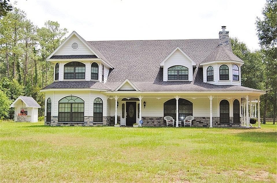Well kept spacious home on 4.21 +/- Acres. Oversized entry with nice living room with lots of built ins. Crown molding throughout house. Laminate wood floors, tile and some carpet. Large Master down with huge master bath. Kitchen has tons of cabinets and lots of windows. 3 bedrooms up with a gameroom. 1 car detached garage with nice covered porch between garage and house. Large workshop with 252 sq ft office space. A 2 bedroom 1 bath guest quarters. Waterwell. Water sofener.