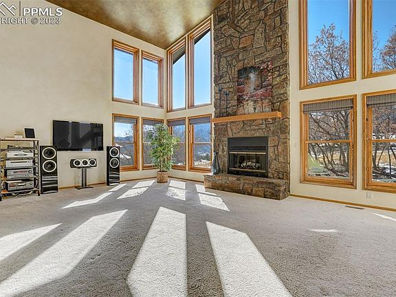 This beautiful custom home is poised on 1.3 acres in Cedar Heights offering stunning Pikes Peak and Mountain views. This home was designed with amenities and finishes crafted to be the perfect Colorado home. The spectacular great room features soaring ceilings, floor to ceiling stone fireplace and large windows that flood the room with natural light. The kitchen boasts granite counters, stainless steel appliances and adjoining dining nook. Take in the tranquility of the forest and views from the expansive covered deck that is great for all seasons. Unwind in the master retreat providing Pikes Peak views from the moment you open your eyes each morning, a remodeled bathroom and large walk-in closet. A second bedroom is just a few steps away from the full hall bathroom. The upper level opens to a richly appointed office/loft an ideal workspace or secondary media area. The walk out basement offers a family room, bedroom, remodeled bathroom, storage, and large flex area that could easily be finished as another bedroom, billiards area, or extended Rec Room. Backing to open space, you will enjoy the serenity of towering pines, privacy, and wildlife. Cedar Heights is a coveted gated community overlooking Garden of the Gods Park & Pike National Forest providing hundreds of acres of natural open space, hiking and biking trails. This home has been lovingly cared for with recent upgrades including: remodeled kitchen and bathrooms, new water heater (2020), new furnace (2019), new refrigerator and washing machine, new garage door openers, reenforced deck and electrical for Hot tub. Come experience the wonderful amenities this home offers!
