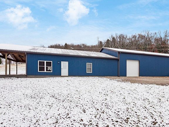 This 2-bed, 2-bath ranch/barndo offers 1,920 sq ft of open-concept living space on 25.68 acres in Licking Valley School district. Enjoy a spacious layout with a modern kitchen and living area, plus a 16' x 40' composite covered porch perfect for outdoor relaxation. The impressive 72' x 40' attached garage features 14' ceilings, providing ample space for vehicles, equipment, or a workshop. With plenty of room for expansion and outdoor activities, this property combines comfort, convenience, and country living at its finest. Schedule your viewing today!