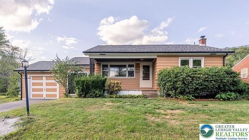 Welcome to this 2-bedroom, 1-bath ranch in Emmaus, offered for the first time since 2002. A driveway and oversized one-car garage provide convenient off-street parking. The front porch leads into a warm living room highlighted by hardwood floors and wood accents, a design detail that carries through both bedrooms. A charming arched opening connects the living room to the eat-in kitchen, with access nearby to a walk-up attic for additional storage.