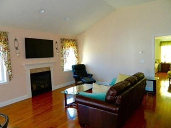 Beautiful modern home, featuring numerous upgrades! Hardwood & Tile flooring throughout 1st floor. Open floor plan Gorgeous Granite counters & Stainless Steel applianced Kitchen with center island. Gas fireplace in Livingroom with Cathedral ceilings open to Dining room! Spacious Master Suite has walk in closet & full bath with double vanity sink, toilet & oversized shower ! Expandable walk out basement with slider to large patio! Spacious low maintenance composite deck overlooking serene country setting. Covered front porch & 2 car garage! Sprinkler system, low maintenance living at it's best in this 55+ community!