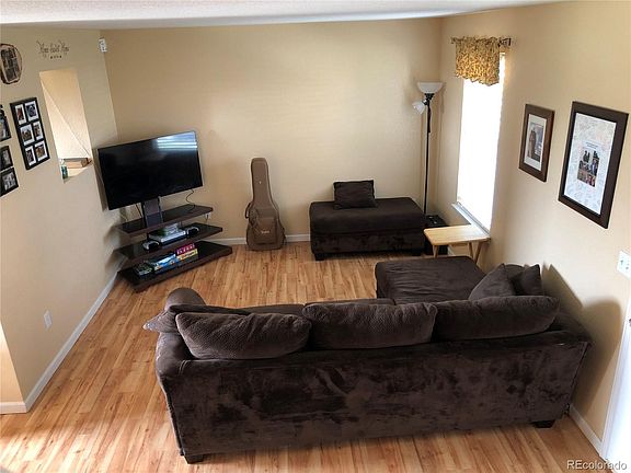 This cozy home is just far enough away from city noise to enjoy the small town feel, the plains, fresh air and views of the mountain range - but close enough to enjoy all that the City has to offer. Only 10 minutes to King Soopers - 30 minutes to Southlands Mall - 40 minutes to Downtown Denver - and less than an hour away from the mountains. This home is down the street from the large park, and community outdoor pool. Laminate flooring throughout, including the bedrooms, with tiled kitchen and bath. All kitchen appliances included. Over-sized one car garage. Roof and Central Air Conditioning Unit new in 2019. Fully fenced backyard has a big storage shed, and a timed sprinkler system for the lawn. The HOA maintains the front yard, roads and manages snow removal and trash. Quick possession.
