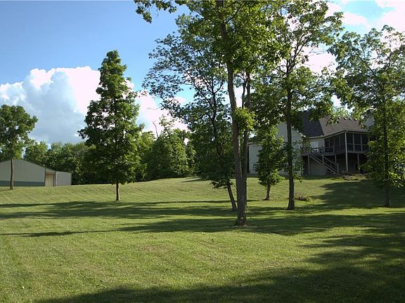 Over 4 miles of mowed trails, deer stands, 2spring-fed stocked ponds - trophy bass and whitetail deer without leaving the driveway. 50x30 detached shop with skylights and wood burning stove, plus two additional lean-tos. The house overlooks beautiful views of your own land with thousands of walnut, oak, and hickory trees for future use. Grounded box blinds, bow hunting stands and well-established food plots throughout. Public record square footage does not include the bedroom and bathroom that were added in 2021. Please verify sq ft and tax figures.