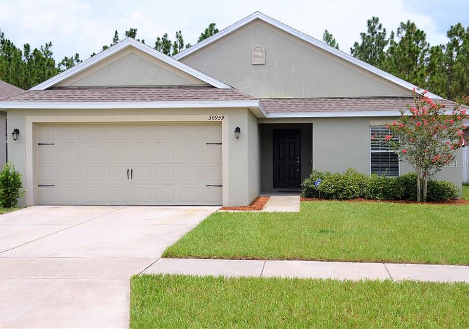 Just LIKE NEW CONSTRUCTION but without the wait!! This beautiful home constructed in 2015 boasts a wonderful open and split floor plan and is located on a premium lot that backs up to serene wooded conservation. Freshly painted interior with new carpeting, vinyl wood flooring and upgraded lighting have been installed throughout. Kitchen overlooks a spacious family room and features granite counter tops, cabinets with crown molding, eat in space and a breakfast bar. Formal living room or dining room is located adjacent to kitchen. Master bedroom includes a walk in closet and bathroom with shower/tub combo. Two additional bedrooms are located on the opposite side of home with a hall bath in between. Covered back patio and utility room complete the functionality of this home. Sherman Hills offers top notch amenities for residents to enjoy including a golf course, clubhouse with fitness center, community pool and tennis courts.