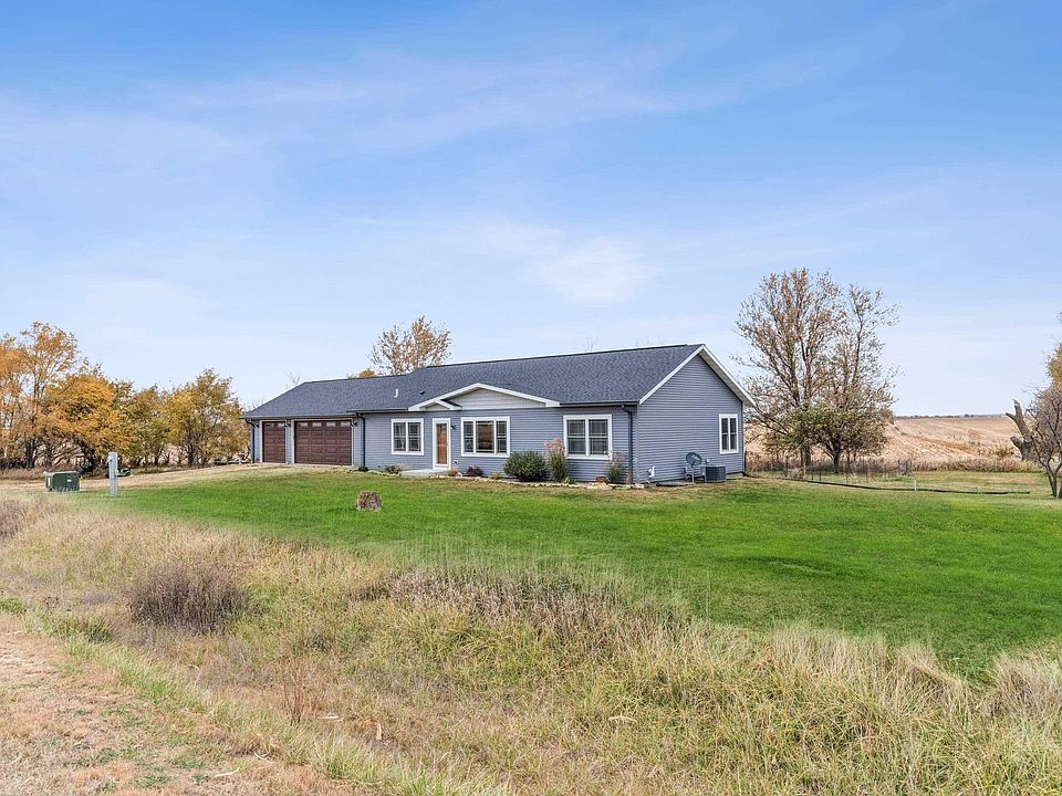 Own your own slice of heaven! This 2020 built Design Home is situated on 2 acres located minutes outside of DeWitt, with just a short drive on gravel. Zero step entry from the 3 car garage into the house and 36" wide doors. You'll fall in love with the kitchen! Quartz countertops, stainless steel appliances and a walk in pantry! Owner's suite features a large walk-in closet, bath with a shower and a soaking tub that overlooks the countryside. The basement is a blank slate and ready for you to finish. It includes 2 egress windows, bathroom rough ins and a passive radon mitigation system. Enjoy the million dollar view from the maintenance free deck. Yard includes cherry, mulberry, walnut, pecan and apple trees.