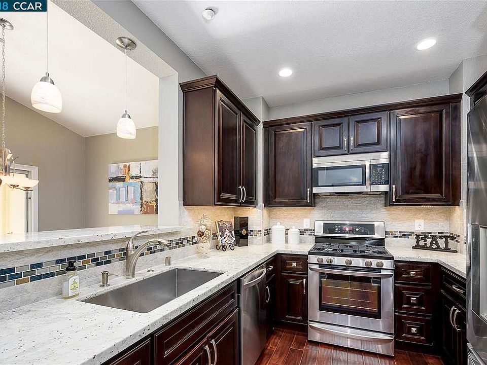Meticulously remodeled private end unit which fronts Arroyo Las Positas Creek in desirable Verona. Better than new! Low HOA fees, gleaming hardwood and stainless steel appliances, vaulted ceilings, newer cabinetry, countertops, LED lighting, flooring, carpet everything! Barely lived in, this gorgeous townhome is turnkey. Light and bright open floorplan, large master suite. Attached garage, outdoor BBQ area, indoor laundry. HOA has pool and tot lot!