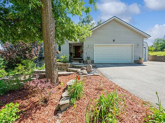 This beautiful in-town-acreage with a view of a community pond is ready for its new owner. What the homeowner loves about this home is waking up every morning to the view of the beautiful pond and nature. Main floor features 2 bedrooms, 2 bathrooms, the spacious main bedroom suite has a home office, a reading nook, walk-in-closet and a full bathroom, vaulted ceilings overlooking the pond. The large living room, kitchen has trash compactor, tiled floors, dining area leads to the decks and an above ground pool. The finished walkout basement features a family room with brick built-in-wood burning fireplace, there’s a slider door that leads to a patio, 2 more bedrooms, and bathroom, large storage areas, workshop, and a laundry room. There is an oversized, 2-car attached garage, 26x26 detached heated garage/man cave that has also has AC, two storage sheds for lawn cares, and toys. Buyer to verify square footage. Some furniture and yard tools are for sale on a separate bill of sales