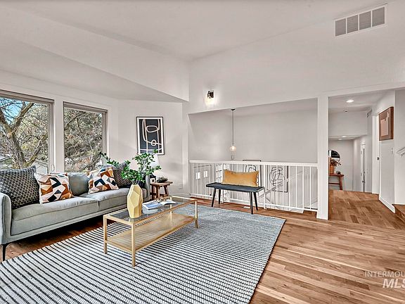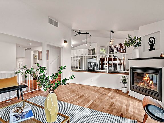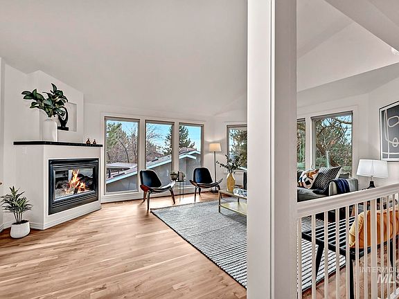 This gorgeous North End home offers a perfect blend of contemporary & classic design! You’ll instantly experience the ideal mix of style & comfort. Vaulted ceilings & open-concept living areas provide excellent spaces for dining & entertaining while newly refinished wood floors & a gas fireplace create coziness & warmth. Large windows fill each room w/light & provide a treehouse-like view! The spacious kitchen has new quartz counters, stainless appliances, updated light fixtures, & overlooks a huge deck. Glass doors in the dining area & hall open to an outdoor oasis! Enjoy time around a firepit w/family & friends on the relaxing back deck, or simply watch deer wander through your own private forest. The sizable primary bedroom includes an ensuite bathroom, walk-in closet, & terrific windows. Downstairs is a guest room & nice powder/laundry room. With a brand new roof & fresh interior & exterior paint, there’s no work to do! Foothills trails are just up the street & Hyde Park & Downtown Boise are minutes away!