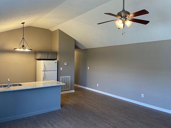 Newly remodeled, great location, granite tops, new fixtures, paint, owner managed and maintained, Private lawn area, great for kids and pets, lawn maintained by landlord, single bay attached GARAGE Near I165 near shopping and easy acces on quite no through traffic road.