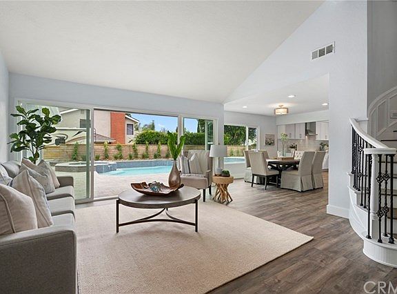 Welcome to this masterfully redesigned Mission Springs home that embodies a contemporary floor plan on an expansive 10,000 sq ft lot. Every inch of this turn key home has been remodeled with meticulous detail. Enter through the modern front door to soaring two story ceilings, plank flooring and gorgeous views of the sparkling pool. Beautiful chef's kitchen features newly remodeled cabinetry, bar seating, walk-in pantry and stainless steel appliances. Kitchen opens to light-filled dining room and family room with floor to ceiling tiled fireplace. Guest bedroom featuring a glass slider to the side yard, a fully remodeled bath and oversized 3 car garage with work space and built-ins complete the downstairs. Climb the wrought iron staircase with wainscoting detailing to find a spacious master suite with custom fireplace and views of the massive backyard. Extraordinary master bathroom has been modernized with new flooring, cabinetry, shower, faucets, fixtures and stand alone tub. Two additional bedrooms share a large remodeled Jack and Jill bathroom. The possibilities are endless in the massive one-of-a-kind bonus room with custom built-in cabinetry, bar and kids work station. Entertainer's dream backyard features dazzling pool and spa, built-in fire pit, contemporary landscaping and numerous outdoor seating areas. Additional upgrades include new: hardscape pavers, furnace, irrigation, paint, flooring, windows, doors, LED lighting, privacy fencing, property gates & stained brick.