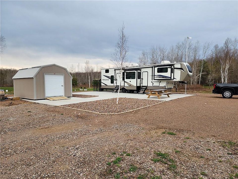 This lot with access to the Jump river is ready for the summer camping season. Enjoy everything the jump river has to offer with the shared access in the development--pontooning, fishing, kayaking, tubing, swimming. Great location near Holcombe attractions. Everything has been recently completed including lot clearing, extensive fill and excavating, landscaping, spacious recreational vehicle cement pad, well/septic, storage shed big enough for the toys. Well over $70k in land improvements. Seller also looking to sell minimally used 2022 Salem by Forest River M-378FL 5th Wheel.