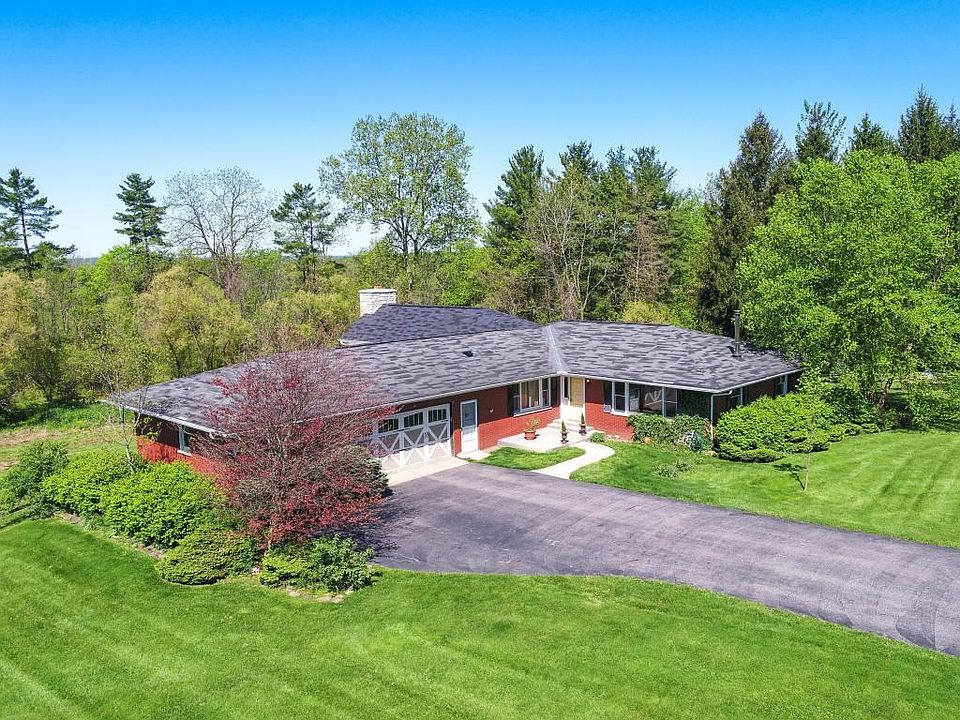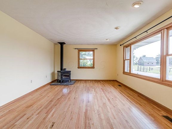 Mini farm - Bring your horses! 11.48 acres with enclosed pasture + 4 bdrm ranch with new renovation/addition(2015), located on quiet country rd; site of former Christmas Tree farm. Stocked pond, horse barn with 2 stalls + goat stall/tack room, wood shed/chicken house. New mechanicals/windows, master suite with walk-in closet, 2 story great room with wood burning fireplace + windows with country views, open kitchen/dining with custom cabinetry, granite counters, finished lower level walk out. Sunset views from deck that overlooks pasture. Near bike trails, 4 miles from Granville/45 minute drive - Columbus/20 to New Albany. See A2A remarks.