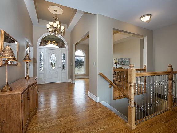 Perched on a rise overlooking 15.14 acres, this all brick, custom ranch w/over 3150sq ft of fin space is the ultimate in country living. Maintenance free ext, 9ft plus ceilings throughout main & lower level. Stunning great room w/stacked stone fireplace flanked by windows offering a beautiful view of the estate. A chef's kitchen w/huge center island, granite countertops, SS appliances, pantry & dining area. Hdwd floors throughout foyer, office, kitchen, FDR and hallways. White custom 6in baseboard & 6 panel doors. 3 full baths on main & a full bath plumbed in LL. Master ste w/walk-in closet w/organizers, sep tile & glass shower, 2 vanities & whirlpool tub. Huge main fl laundry & drywalled 3 car attached garage. 2 Barns (63x40 w/63x14 overhang, water, partial cement floor, 4th garage stall, shop & room w/sink) & (36x30 w/36x12 overhang & 1/2 cement fl, water & loft), chicken coop, 4 pastures, 10+/ acres of orchard grass hay & a stream complete this turnkey estate. Zoned Ag. Perfection!