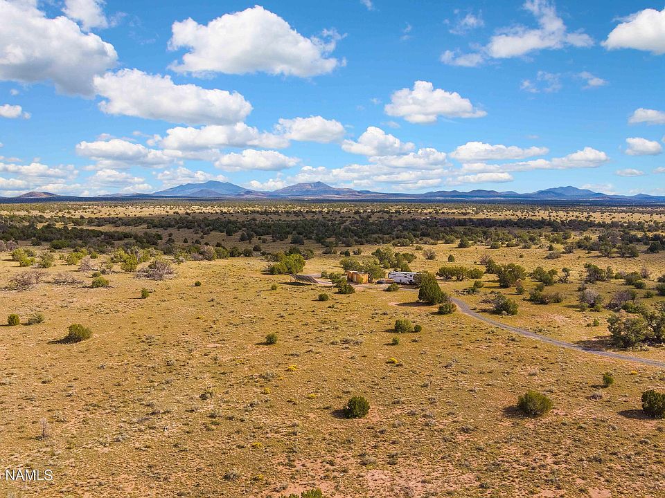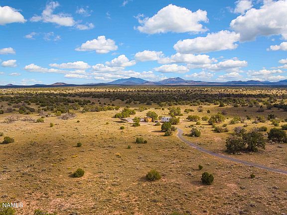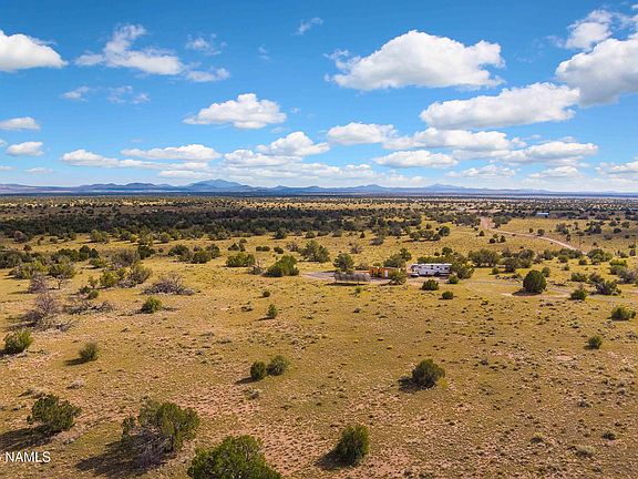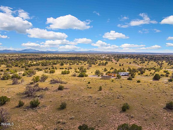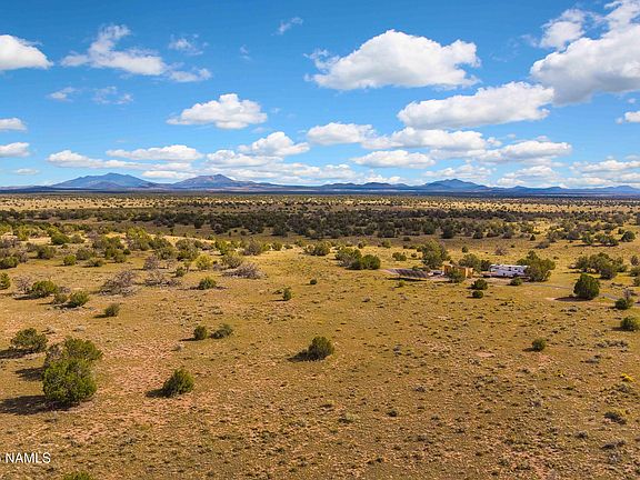Beautiful 12-acre retreat in South Rim Ranch boasting breathtaking, unobstructed vistas of the San Francisco Peaks. Enjoy year-round access on pristine roads, shaded privacy from mature trees, and the pinnacle of high-desert living. This is the premier spot to bring your dream home to life, with essential prep work already in place. This unique property features a robust off-grid-capable solar setup and practical infrastructure designed to support temporary or ongoing occupancy during a build. The solar system delivers an 18,000-watt capacity, supported by 24 high-efficiency panels at 400 watts each, six deep-cycle batteries, and a reliable inverter, ensuring ample power for critical appliances, tools, and lifestyle needs on site. A dedicated 10x12 storage shed houses the solar batteries and inverter, with an additional 10x10 shed providing extra storage for equipment and materials. A 1,250-gallon Elgin septic system with plumbed lines is in place but currently unpermitted; septic drawings need to be prepared and submitted for county approval in order to meet permitting requirements. Two 2,500-gallon water tanks ensure ample supply for household use, construction needs, and irrigation as needed. For temporary accommodations, the property is equipped with two 50-amp RV hookups, prepared for water and electric connections to support permitted RV living/occupancy during the build. These ready-to-use configurations are in place to support smooth on-site living during construction. Enjoy all of these upgrades in addition to a new cinder driveway. You can also bring electricity to the lot from the nearby electrical line if you choose to. This incredible property has everything and more. Come build the northern Arizona home you've been dreaming of.