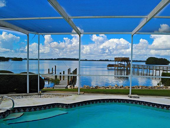Fabulous Waterfront Views From This Prime Location At The Southern Tip of Newfound Harbor. Spacious 4Bdrm/3Ba Home Features A Screened Pool, Dock, Attached (Oversized) 2 Car Garage, A Fireplace And Magnificent Water Views From Every Room. Extra Large 2nd Floor Master Suite Opens To A Balcony Overlooking The Open Water. There Is Also A Convenient 1st Floor Bedroom & Full Bath. Electric Hurricane Shutters For All Windows & Sliders.