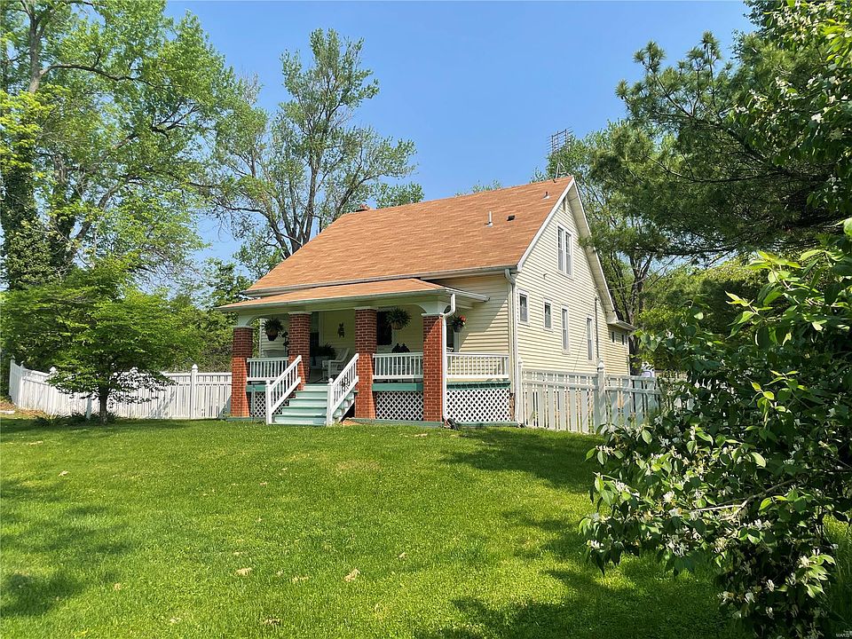 This beautiful place, located close to St. Louis, sits on over an acre with an extra big, fenced yard, space for a vegetable or flower garden, or you could put in the pool of your dreams - Seller said divide the land and add another house - use your imagination! Main floor includes: the gorgeous kitchen, complete with farm sink & stainless-steel appliances, and a large island for extra seating; a separate dining room, living room, & large family room with sliding glass doors to the back deck, a mud room with separate entrance to outside, a main floor Master & full bath - all on the first floor. 2 extra bedrooms & full bath upstairs with original wood flooring. The back deck is ideal for private BBQ's while the covered front porch is perfect for rainy days. Full basement could be finished. 4-car garage with 220 box, 6-stall barn, metal storage building AND a She-Shed that could be converted to an AirBnB or used as craft room. Or maybe this is your mini farm? Additional Rooms: Mud Room