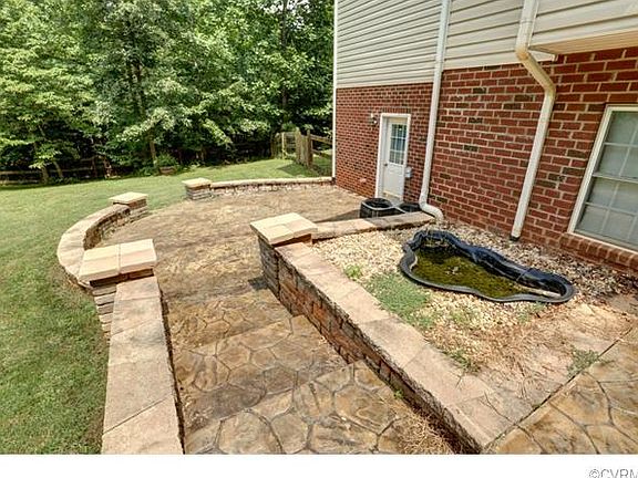 Handsome Mill Forest colonial with 3rd floor FINISHED bonus room and FULL unfinished basement. This home is move in ready and privately set in one of the most desirable neighborhoods in central Goochland county. Highly detailed craftsmanship on the stamped concrete and stone patio provides for a perfect setting to enjoy your private back yard. Inside you'll notice fresh paint, lots of natural light and an open concept floor plan. The kitchen boast beautiful oak cabinetry and Corian countertops. Kitchen flows seamlessly into the living room with high quality Bose surround sound system and centered by an elegant gas fireplace. The PERFECT place to enjoy a movie or just relax after a hard day at work. High end finishes also include crown molding accenting first floor and detailed wainscoting in the formal dining room. Stunning oak floors throughout first floor and brand new carpet on the second. 4 well appointed bedrooms on second floor, including HUGE master suite with vaulted ceilings. THIRD floor is finished! Don't miss the FULL unfinished basement, which is rare in this neighborhood. Fully fenced in back yard. High speed Comcast available. Don't miss the opportunity!