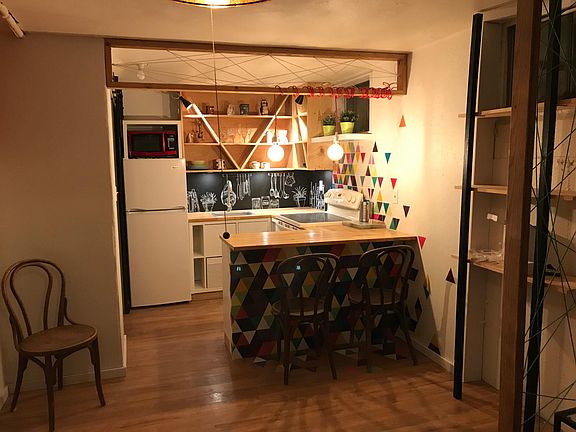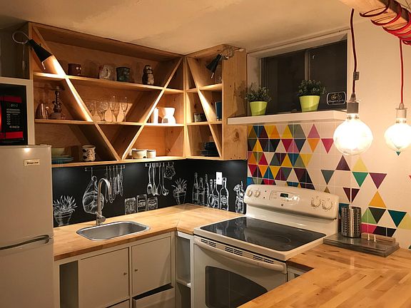 Adorable, colorful, modern basement apartment with private entrance, shared yard, shared laundry and off street parking. 1 bed room and 1 bath with walk in shower. Recently remodeled with new flooring, new paint and new appliances and all new bathroom. Walk-in closet. Shared laundry and yard with upstairs tenants. Private entrance. One off street parking spot and additional parking on street. Includes extra private storage room. Close to Denver University, Swedish hospital, porter hospital and Craig hospital. Has full sized stove, microwave, refrigerator, laminate flooring, bar seating, built in wood shelves, built in TV (see pictures), walk-in shower with bench seat and natural rock floor. Shared yard with garden beds and beautiful patio surrounded by vines. Airconditioning and central heating. Utilities and internet split / shared with upstairs unit. While we prefer no pets, pets are negotiable. This unit is a two person max occupancy. Photos were taken at night. Apartment does get some good amount of daylight, for a basement apartment that is. Utilities shared with upstairs tenants.