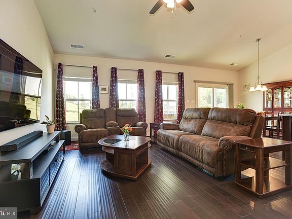 Gorgeous ranch-style home in the amenity rich 55+ community of Sanctuary at Two Rivers has spared no expense with fine finishes and beautiful accents throughout! Fall in love with one level living at its finest with high vaulted ceilings, rich hardwood flooring, crown molding, neutral color palette, larger floor plan featuring both the primary sitting room and screened porch options, power and top down bottom up shades, and so much more. Inspire your inner chef in the kitchen appointed with 42-inch cabinetry with undermount lighting, granite counters, tiled backsplash, center island with breakfast bar, and stainless steel appliances including a gas range. The desirable open concept living and dining rooms situated off the kitchen are ideal for entertaining and everyday living. Enjoy relaxed lounging sipping your morning coffee or afternoon tea on the comfortable screened porch overlooking community space. Retreat to the elegant primary bedroom highlighting a tray ceiling, walk-in closet, and sitting room with beautiful windows. The spa-like en-suite bath showcases a double vanity with granite counter, and a tiled shower with glass door and a bench. A second generously sized bedroom and a full bath conclude the sleeping quarters. A flex room with French doors and wainscoting provides additional space perfect as a home office, guest room, or exercise room. This home also comes equipped with a separate laundry room with sink, ceiling fans, color adjusting LED lights in kitchen, exterior irrigation system, outdoor WiFi enabled speakers, and garage outlet suitable for electric car charging. Enjoy the numerous community amenities including a clubhouse, pool, fitness center, tennis courts, tot lots, picnic pavilions, and walking trails!