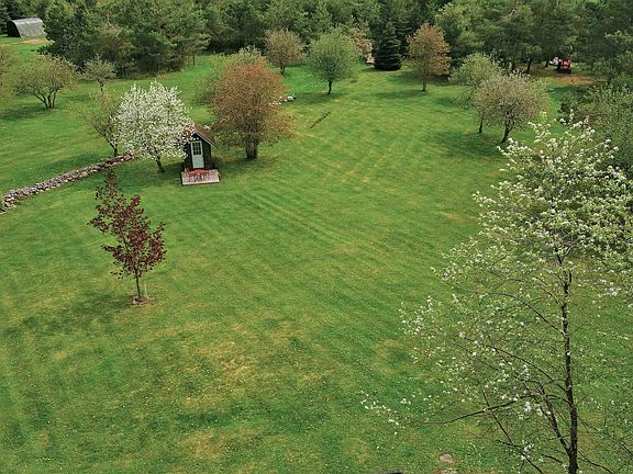 CHARMING COUNTRY HOME FOR SALE on 1.9 acres. This small but cozy home has been tastefully renovated throughout. The warm atmosphere of this house has the perfect blend of painted drywall along with real wood trim and new hardwood floors. The kitchen slider door opens to a second story deck providing an elevated view to 1.9 acres of beautifully landscaped property. There are many apple trees, a picturesque stone fence on the North property line, numerous shade trees, and a cute she-shed to make her happy! Built on a sloping hill, this house has a full walkout basement. The beautifully landscaped yard has rock retainer walls and flower gardens that must be seen to appreciate.