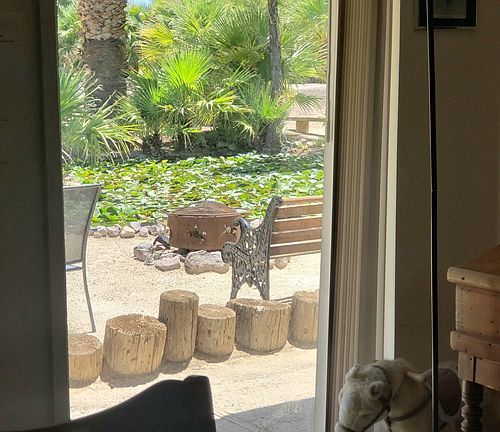 The "Music Cottage" sits on a 20 acre oasis in the desert with lakes, trees and serenity. A favorite get-away for many acoustic musicians and composers, it is completely furnished. There is a large bell collection. 2 keyboards, guitars, a functioning pump organ and various percussion instruments. The cooler and heater work very well and there is an adjacent washroom with FREE washer and dryer. The kitchen, bedrooms and bathroom are fully furnished. The bedroom and kitchen ceilings have paintings to give a cathedral illusion. It is surrounded by a beautiful lily pond and next to a large lake for fishing, swimming and boating. Portable BBQ with outdoor seating and fire pit by the pond. There is a large, covered parking structure attached. There is satellite TV provided by owner and guests provide their own wifi with hotspots. There are gas stations with convenience stores and take-out food and bars, but any major shopping has to be done in Barstow (20 minutes away.) There is wifi available at the bookstore on the ranch and there is an art studio and tortoise preserve. Close by hiking and Mojave Desert Adventures: Calico Early Man Site, Calico, Afton Canyon, Mitchell Caverns, Lava Tube, Indian Caves and Petroglyphs Owner pays for electricity, water and trash collection. It is NOSMOKING in the house, but smoking is allowed outside. Minimum duration is 31 days, Owner must be informed about any visitors to renter, as it a gated fenced ranch. There is a 5 mph requirement on the ranch due to animals that roam free. You will have a clicker for the gate.