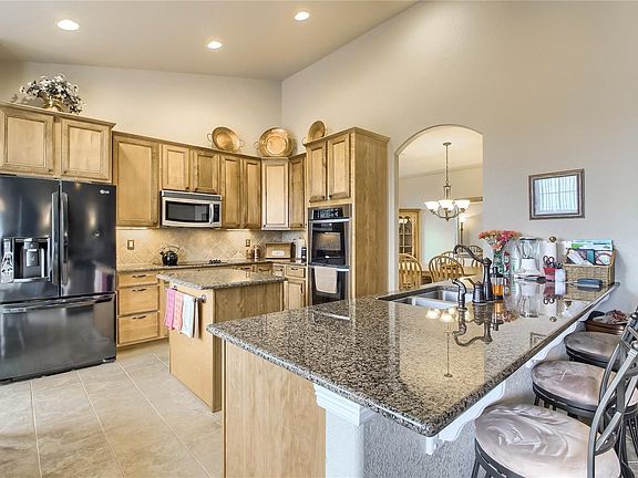 Beautiful Ranch Home in Terrain with great views, large .33 acre corner lot, and located at the entrance of a small cul-de-sac. This 4 bed and 3 bath home has slab granite counters, upgraded cabinetry, 5-pc master bath, 3 car garage, covered front porch, and impressive views off back deck. The main floor also features an office that can easily be converted to an additional bedroom if needed. Home is ideal for multi-generational living with an additional kitchen in the basement, a laundry hookup on each level, and two separately zoned furnaces. Don't miss the professionally landscaped backyard with a pond/water feature and custom built utility shed in the back. Washer/Dryer included. Don't miss Terrain's community pool, dog park, great parks including Wrangler Park, and many trails throughout. Check out online 3D Tour as well!!