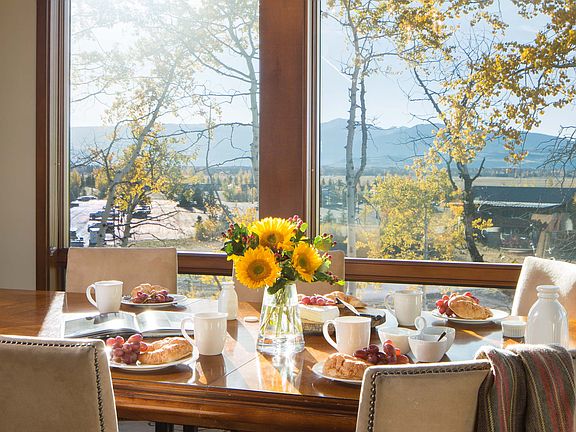 Ski home, peel off your boots and slide into a private hot tub tucked into a grove of aspen trees. This ski chalet is ideal for family getaways and entertaining. Turn the key and arrive at a furnished 3-suite plus loft modern home with an open kitchen attached to a great room with cathedral ceilings, a wood burning fireplace and a view of the Tram climbing Rendezvous Peak. This coveted retreat boasts an extra 500 sqft making it the largest free standing home in the development. The site provides sunlit southern exposure and a dining room facing east with views of the Gros Ventre Range and the iconic Sleeping Indian foothill. Validation of rental history available by request.