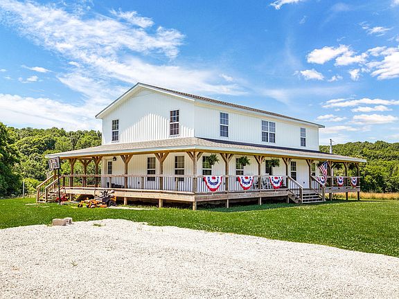 STUNNING LIKE NEW FARM HOUSE ON 57 acres!! This home was built in 2019 and has been immaculately new since then!! Enter in the the vaulted entry way leading into the living area with tons of natural light and just the right amount of space for your guest and family. The kitchen has an abundance of cabinet and countertop space with tons of storage! Laundry room and guest bathroom are located just off the kitchen. Master suite on the main level with its own Walk-in closet, bathroom vanity, and shower. Climb the beautiful staircase to the upstairs where you will find five other bedrooms all with more than adequate space and their very own private bathrooms on the second level. Not only is this house a charmer it was built out of some of the best construction materials on the market. 2 x 6 walls, and spray foam insulation will have this house lasting you a lifetime! Sitting on 57 acres of gently rolling Webster County real estate makes this property highly sought after! This land will include just the right amount of woods to be covered in wildlife such as deer, turkey and many others! Tons and tons of pasture for your livestock and hayfields along With a 60 x 80 Haybarn. The wet wether creek runs approximately 3 to 4 months out of the year and serves as a good swimming hole and water source for the livestock. All of this is located less than a half a mile off blacktop highway just 3 miles south of Seymour. Beautiful sunrises and sunsets can be enjoyed from the complete wraparound porch. While location is keen, this place also has a very secluded setting with wonderful neighbors and large farms surrounding. Come and enjoy what the Ozarks has to offer!!!!