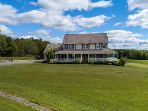 AMAZING property! This stunning home offers ample space throughout. Wonderful wrap around porch, awesome views, huge kitchen and island, wonderful large living room with gas fireplace, first floor library room, second floor laundry, finished lower level with guest bed and full bathroom. 60 x 64 AMAZING barn, with a 20 x 60 area upstairs, tack room, slant bars, head locks, flying gables feeding bunk, year round heated water, high speed Internet even in the barn, chicken house, fruit trees, grapes, fencing and SO much more!