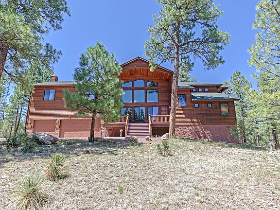 Stunning fully-custom built home situated on beautiful 1.17+/- acre lot backing the Coconino National Forest. Inside you will find soaring 25ft cathedral ceilings lined with beamed tongue-in grove. The great room has a floor to ceiling windows letting in the natural light and floor to ceiling dry-stacked stone gas fireplace that opens to the dining room and kitchen. The heart of the home has a large granite kitchen island & solid alder cabinetry with a custom rustic finishes and matching details throughout the home including the dark wood lined floors. Private master suite is on the main level & has access to the back deck, large walk-in closet, linen storage & jetted soaker tub and separate shower. Upstairs the grand loft/gameroom overlooks the great room that has access to another private deck overlooking fenced back yard w/private gate onto the national forest and features plenty of room for entertaining friends and family. Additionally, you will find 4 spacious bedrooms with a second living area and another floor to ceiling dry-stacked stone fireplace. The 3-car garage has plenty of room to store all of your toys. Come see this home today!