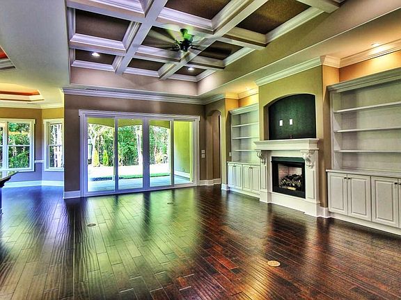 Beautiful 4BR 3BA Mediterranean Style Home. Enter the home through the large wrought iron double front doors. You will then see a beautiful display of an open floor plan, a fireplace, built-ins, and crown molding. The dining area, kitchen, family room, and master, feature multi tray or coffered ceilings. The kitchen has an island with a bar, wall oven, gas cook top, wine rack, granite counter tops, stainless steel appliances, and beautiful custom cabinets. The master has, double sinks, large shower, garden tub, his and hers closets and granite counter tops. If its curb appeal you are looking for you will find it here, the stucco finish and landscaping are amazing, you will absolutely love the large lanai off of the rear of the home, great for late afternoon relaxing or morning coffee. There is also a tank-less gas powered hot water heater. The Bluffs on the Waterway is a gated custom home community with great amenities, its located on the Intracoastal Waterway. This could be your dream home!