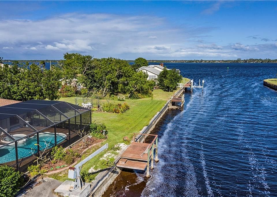INCREDIBLE MYAKKA RIVER VIEWS and 80 feet of SALTWATER frontage from this one-owner beauty! This is the Florida lifestyle... boasting a heated SALTWATER POOL with in-ground spa too!!! And the fisherman in your life will be thrilled with the 10,000 lb davits and dock! This home is 3 lots from the Myakka River which leads directly to the Charlotte Harbor & Gulf of Mexico. Seller is offering a $30,000 credit at closing for upgrades to home!!! Featuring 3 bedrooms PLUS an office with slider to pool & gorgeous Myakka views... AKA BONUS ROOM with the master suite being connected by a Jack and Jill bathroom, so there are 2 options for the master suite or it would be perfect for a family caring for another family member! NO CARPET anywhere- all tile in main living areas & 2 bedrooms and laminate in the other 2 rooms. The kitchen showcases ample cabinet & counter space, stainless appliances with a gas stove, pass through window to pool, track lighting and breakfast nook. The views from the breakfast nook are BREATHTAKING with sliders right out to the pool. Enjoy your morning coffee overlooking the wide water views! Walkthrough pantry and inside laundry room! The pool features a large covered area for entertaining in the shade, outdoor shower, accordion hurricane shutter, a saltwater pool, pool cage from 2016 and ample sliders to bring the outdoors in!! The guest bathroom has a medical grade therapeutic walk-in jacuzzi tub. A split floorpan with one guest bedroom boasting spectacular Myakka River views along with slider access to the pool. On city water! Located on a dead end road for added privacy! May be purchased with cleared lot next door MLS# C7435695 for an additional $130,000! Could conveniently be purchased for parking your RV on!! Gulf Cove is conveniently located near Englewood Beach & Boca Grande Beach, approximately 25 min by car. Schedule a showing TODAY-this home will not last on the market!!!