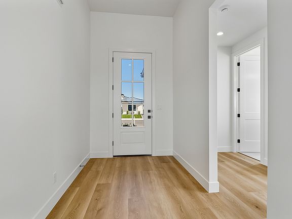 New home under construction with a large backyard with full block wall fencing, rain gutters, and xeriscape front yard with RV parking. Curb appeal shines with stone accents, modern sconces, and a welcoming entry. Inside you'll find tall ceilings, 8-foot doors, and an open great room with a large 3-panel sliding glass door that opens to the covered patio-perfect for indoor/outdoor living. The kitchen is beautifully finished with quartz countertops, custom soft-close cabinetry, stainless steel appliances (including refrigerator), and a natural gas range. The split floor plan offers two bedrooms on each side of the home for added privacy, 3 bathrooms, and the laundry room includes upper cabinets for convenience. The spacious primary suite features canned lights, ceiling fan, and a gorgeous bath with a soaker tub, tiled walk-in shower with euro glass door, and double vanities. Other upgrades include a natural gas BBQ stub, tankless water heater, tiled showers, no carpet in the main living areas, and space for a mud bench. Located in the Dixie Power service area. *All information deemed reliable but buyer to verify.