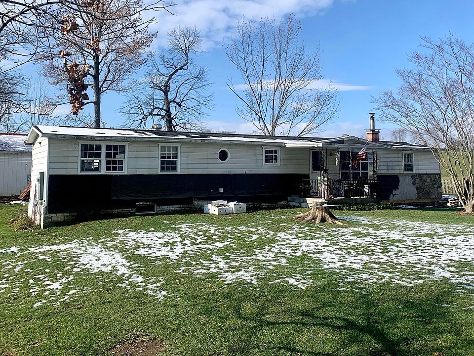Great condition 1970 single wide manufactured home that sits on 2.2 acres of beautiful land! Home features nice eat in kitchen with all appliances, living room with1/2 inch tongue and groove pine ceiling, a bow window and hickory wood flooring. 2 nice sized bedrooms, 1 1/2 bathrooms, laundry area, a nice enclosed back porch and all sits on a full foundation. There is a pond on the property, a larger barn and small barn.