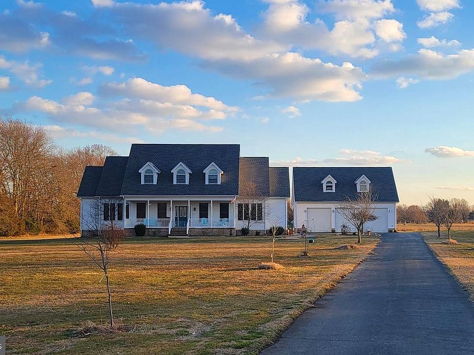 This custom Cape Cod has been meticulously maintained and upgraded so do not hesitate to schedule your appointment. Featuring an open concept plan with a great room boasting soaring ceilings, gourmet kitchen with oversized center island, stainless appliances, and an abundance of work space. This home also provides a first floor primary bedroom suite including a luxury bath with tiled shower and soaking tub. The second floor which is accessed by a dramatic curved stairway features 3 additional bedrooms and a shared bath. As you pull down the extended drive you are greeted by an oversized, detached 3 car garage with second floor storage and matured landscaping. The home is situated on just over 3 acres just outside of Dover. Professional photos coming soon!