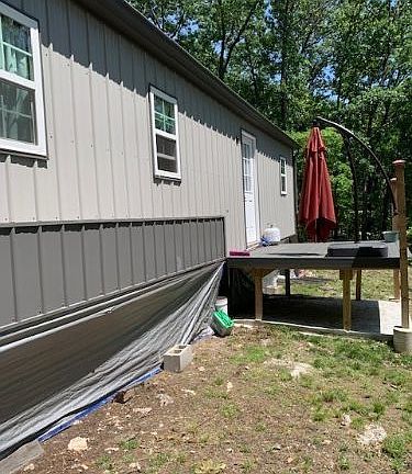 Remote setting with a desire to live off the grid, this little 560 sq ft homes is for you. Solar Powered with water collection sitting on just over 5 acres. Green house, Garden, and chicken coop already in place. Home is livable, but still needs additional finishing work. Owner is including a heat pump and tankless water heater with the home, powered by 20 Solar panels (15 additional before close) with a 5KW power inverter with a back up generator. Propane wall heater and wood stove keep the home nice and cozy. A 16 ft tracker, with 40 HP 2 stroke, and band new trolling motor will be setting in the driveway. This will make a great cabin for the outdoors type or the weekend getaway home for the lake. NO Restrictions, so go take a look and see for yourself.