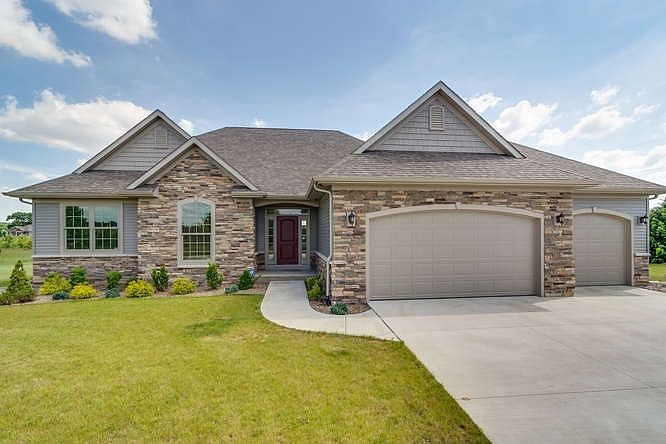 Beautiful 3 bedroom ranch with 3 car garage. Open concept, granite counter tops, all new stainless steel appliances. 5 burner gas range. Beautiful hardwood floors throughout kitchen/dinning area and foyer. Ceiling to floor stone fireplace in great room. Lots of windows for the natural light. Master suite has bath with double sinks/granite tops, garden tub and custom shower. Huge walk in closet. Everything is new. Home was just finished in 2014. Owner has just finished with all window treatments and added a security system. Beautiful landscaping with large stones. Sliding doors off kitchen dinning area out to patio. Huge lower level with egress window ready to be finished, and is plumbed for a bath. This is one beautiful home. No need to build a new home this one is like new and ready for you to move right in. Call for your private showing today!!!!