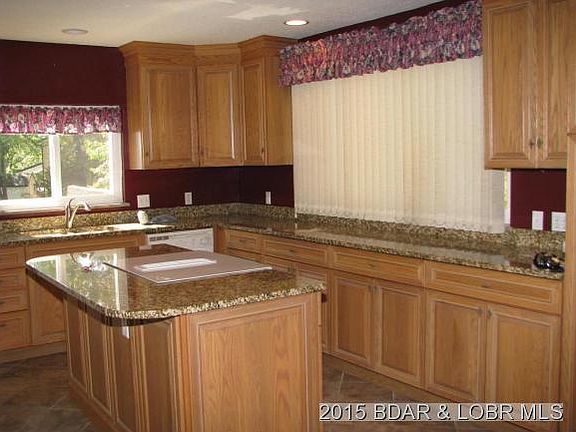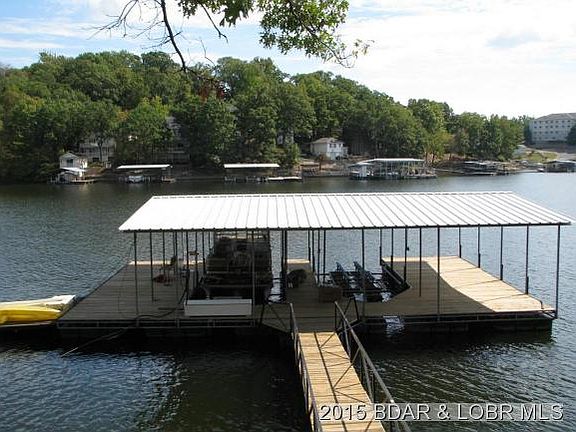 Fantastic view from this lovely waterfront home! Located in a cove at the mouth of the Gravois arm, the location is perfect! Home has been updated in the last 5 years with new kitchen, window, doors, and roof. There is a detached garage and also an out-building that can be used for a shop. Two well dock with 1 hoist, a PWC lift, and a covered swim platform. A great package!