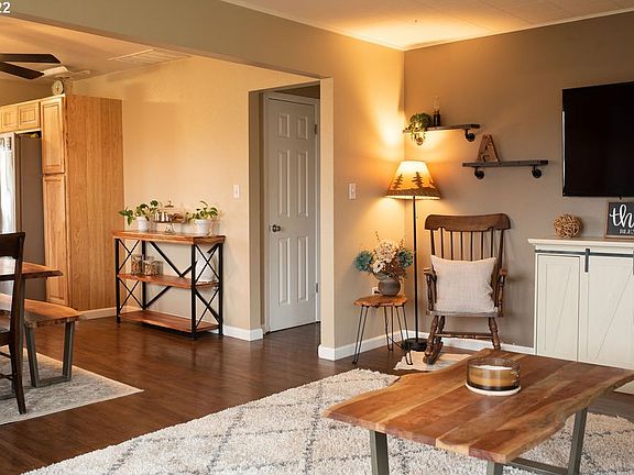 Single Story Updated Country Home on Large lot with Detached Garage. This 2 bedroom home has 1004 sqft on .34 acre. Features include SS appliances, SS refrigerator included, updated bathroom with tile, most windows are vinyl, heat pump, newer roof, newer septic placed in 2018. 35x21 garage with storage, fenced secluded backyard with fruit trees + garden, Rv parking. Perfect for first time home buyer!