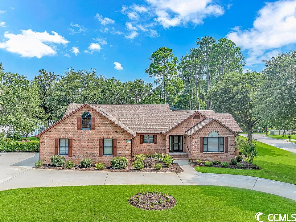 Dreaming of owning a gorgeous, all brick home in the Prestigeous golf community of River Hills? Look no further than 3099 Kings Ct.-this beauty encompasses southern living at its finest! It spans over 2700 heated square feet, and just over 3500 total square feet. The main home features 3 bedrooms, 2.5 baths, a flex space off of the 3rd bedroom (perfect for a second living room/office/playroom/craft room/nursery, etc.) dedicated laundry room, and a Carolina room. It has a large/oversized side-load garage equipped with a full bedroom, full bathroom, and a potential kitchenette area above- can only be accessed through the garage and is connected to the home's main heating/cooling system. The home is situated on a well-manicured, corner lot equipped with irrigation, a large rear patio, and a convenient circular driveway. The kitchen is a showstopper with refinished cabinets, granite countertops, beautiful backsplash, a breakfast bar, newer appliances, and an adjacent and abundant dining area with built in storage- perfect for entertaining! The soaring vaulted ceilings, recessed lighting, and abundance of windows make this home open and bright. The great room is open to the kitchen and even features a wood burning stove! Bedrooms are all very generous in size and all bathrooms have had a recent facelift with new vanities, mirrors, and fixtures. The master bedroom is split from the other two bedrooms and is an oasis! Seller is proving new owners with a COMPREHENSIVE (not the basic one) 1-year home warranty as well as a 1-year pool membership for the 2024 season! This home features a plethora of upgrades/updates: freshly painted interior, on demand propane water heater, whole house generator, new roof and sky lights (2019), gutter with guards, and MUCH MORE- ask your agent for the completed list located in associated documents! The location cannot be matched as you are close to the Little River waterfront, shopping, dining, Calabash NC, North Myrtle Beach School zoned, and Cherry Grove beach! The Current owner has maintained this home meticulously and it certainly shows!